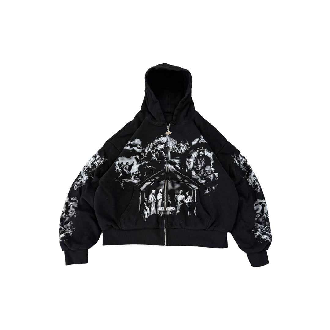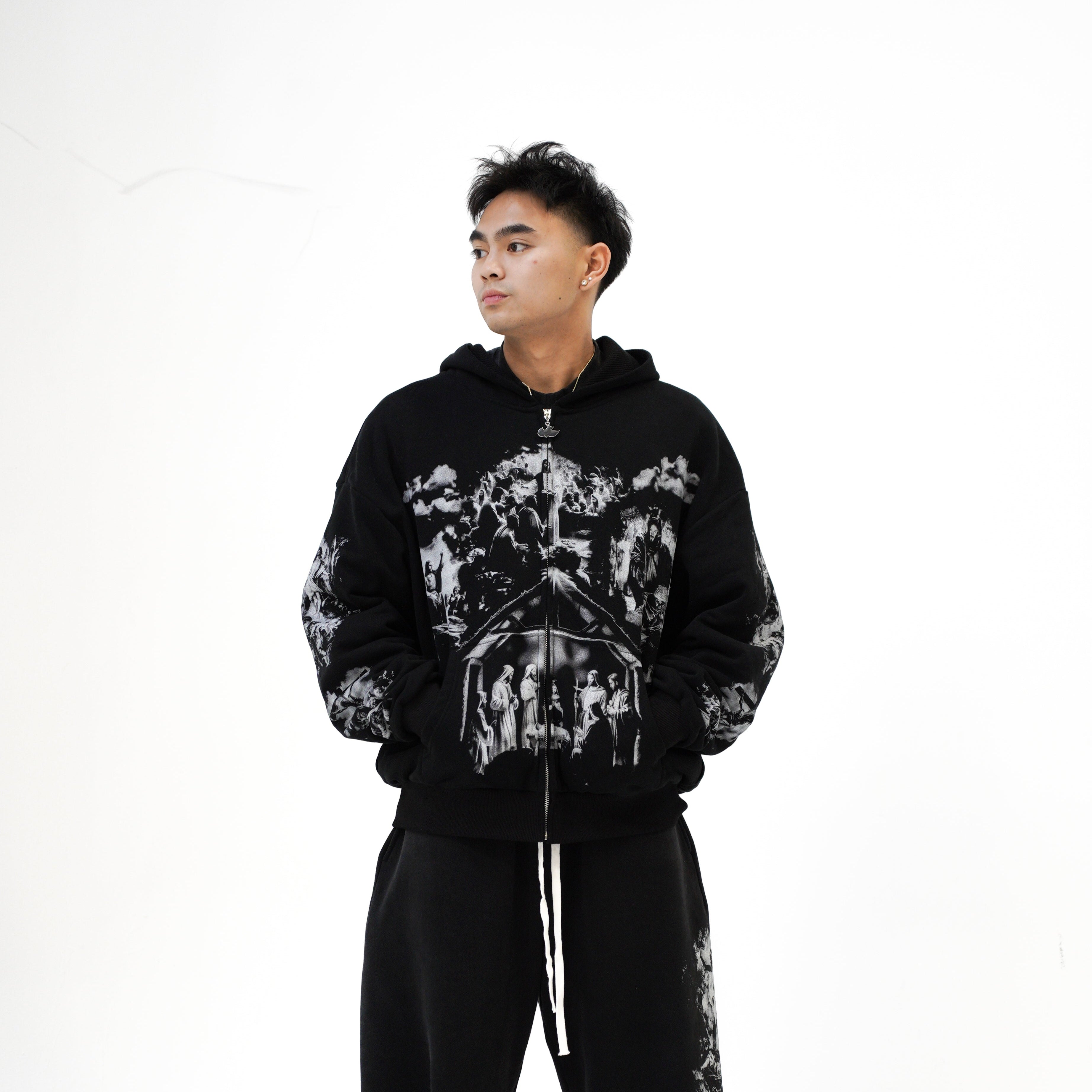 Step into weight and warmth with the Veil Zip. Crafted from 500 GSM heavyweight fleece, this zip-up is built to last while carrying deeper meaning — the strength found when the veil was torn.
