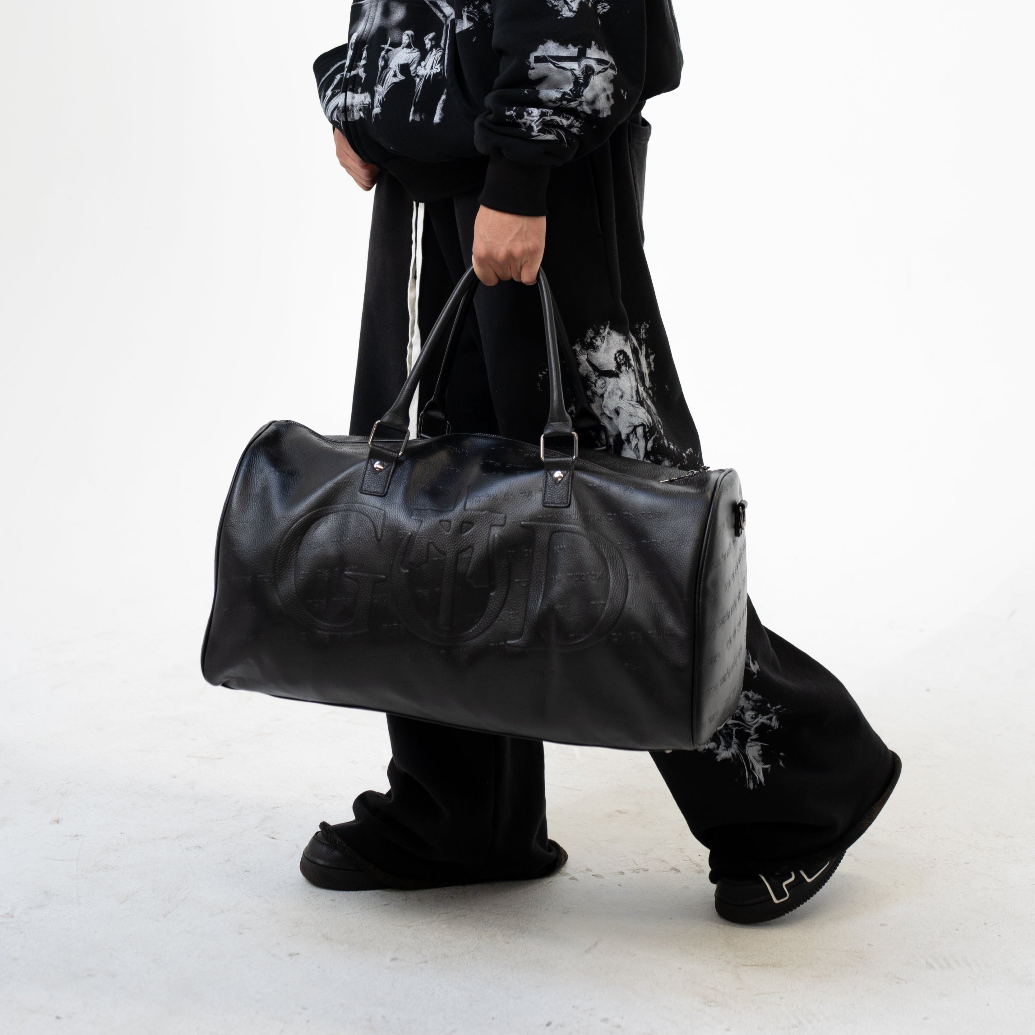 The “I AM” Duffel Bag is more than a carryall — it’s a declaration of identity and faith. Crafted from tumbled leather, every detail is designed with intention, echoing the conversation between Moses and God: “I AM who I AM.”